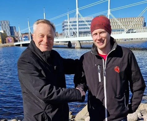 Göran Carnander, ordförande i föreningsrådet, hälsar Måns välkommen som projektledare.