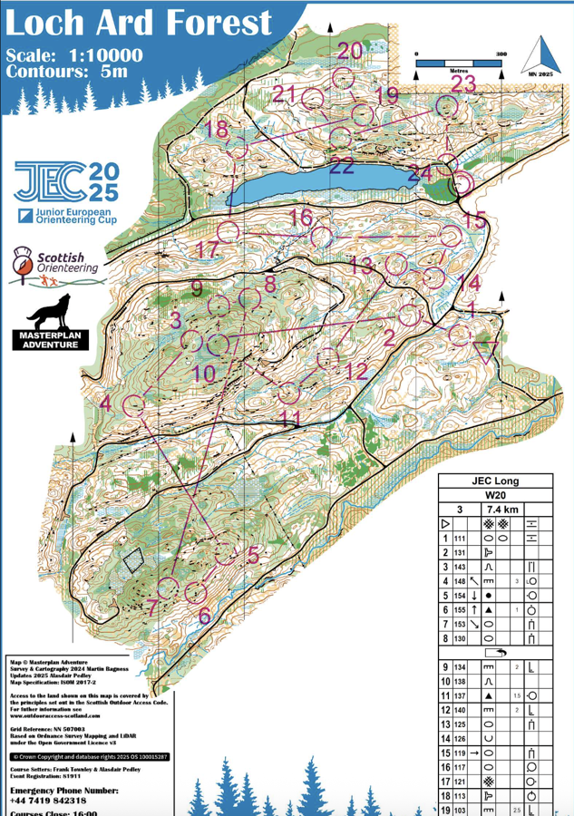 Det bjöds på en tuff långdistans i Loch Ard Forest med en hel del kupering och en karta med ganska mycket grönt. Den svenska truppen klarade utmaningarna med glans.
