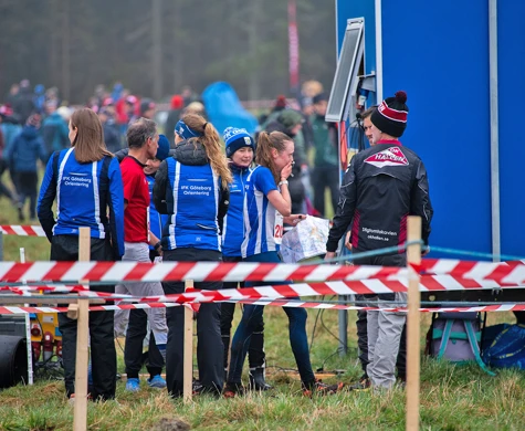 Bildtext toppbild: Sanna Fasth förde IFK Göteborg Orientering till seger på Stigtomtakavlen och tas här emot av sina lagkamrater i målfållan. Bild: OK Hällen.