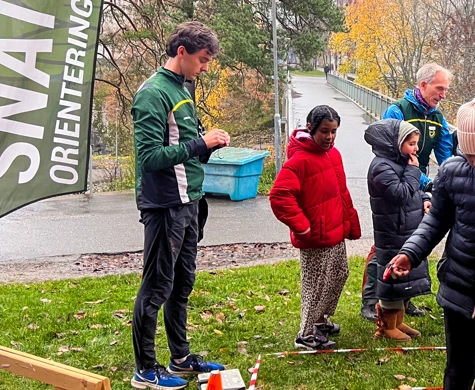 När de kom tillbaka möttes de av Oskar Forsberg och Johan Lidmar som växlade mellan att skriva ut resultatlappar och att bjuda på kakor och frukt. Skratten ekade mellan husen när barnen sprang mellan kontrollerna, uppmuntrade av både föräldrar och orienterare från arrangörsklubben.