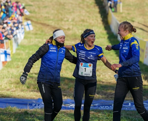 På damsidan blev det en rejäl blågul uppvisning. Hanna Lundberg tog täten direkt och växlade ut till Sanna Fast 59 sekunder före Estlands Evely Kaasiku. Sanna Fasth drygade sedan ut ledningen och växlade ut till Tove Alexandersson 2,41 före finskan Maija Sianoja. Tove Alexandersson gör sedan även hon en fin sistasträcka och hela laget kan korsa mållinjen tillsammans, 2,37 före Norges Andrine Benjaminsen.