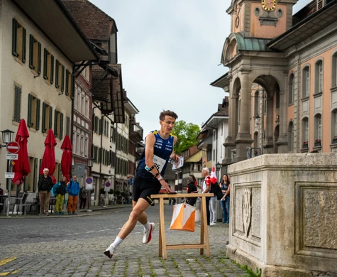 Under herrarnas tävling drog det in ett åskoväder, mest påverkade av detta var den senare delen av startfältet, däribland Gustav Runefors som tog sig i mål samtidigt som det haglade ner över Zofingen.Gustav Runefors på väg mot sist kontrollen. Foto: Hugo Mattsson