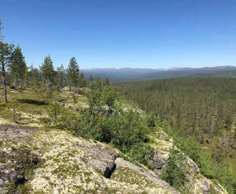 Det är fjällnära skog med väldigt stor variation i terrängen. Supersnabba partier med extremt god sikt, gles tallskog med hård botten och mycket god löpbarhet men också bitar med mycket spännande kurvbild, väldigt steniga och branta delar som är svåra att ta sig fram i.Terrängområde med gles tallskog, hård botten och mycket god löpbarhet. Foto: Grövelsjöfjällens OK.