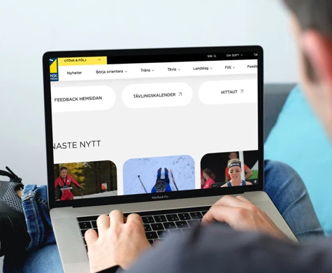 På svenskorientering.se fanns mycket information på startsidan, men det fanns även undersidor för varje gren inom förbundet där det lätt samlades återkommande information. På nya orientering.se har vi delat upp sidan i olika sektioner utifrån målgrupper som söker information. Du kan lätt växla mellan de olika sektionerna i det färgade blocket intill SOFT:s logotyp i sidans meny.